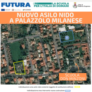 Il nuovo asilo nido sorgerà all’interno dell’area alle spalle della scuola Secondaria di Primo Grado ‘Don Minzoni’ con accesso dedicato da via Volta, su uno spazio libero e questo consentirà di costruire una nuova struttura moderna per gli aspetti architettonici e strutturali e in linea con i nuovi canoni di efficientamento energetico. Inoltre, questa scelta consentirà ai piccoli utenti di godere degli spazi intorno al nuovo edificio per le attività all’area aperta.