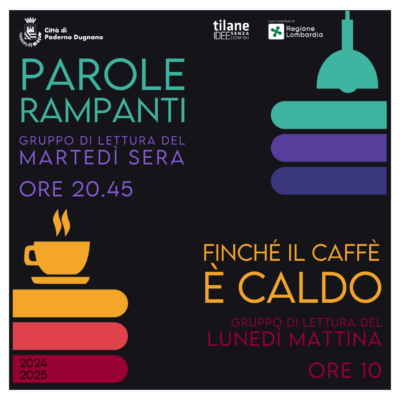 I gruppi di lettura di Tilane sono due: Finché il caffè è caldo il lunedì mattina alle 10 e Parole rampanti il martedì alle 20.45.